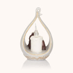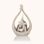 Figurka Świętej Rodziny w świetlistej oprawie o miękkich, złoconych liniach. Delikatne światło podkreśla spokój i czułość sceny. W formie o wysokości około 18 cm stanowi elegancką, romantyczną ozdobę pełną ciepła i duchowego blasku.