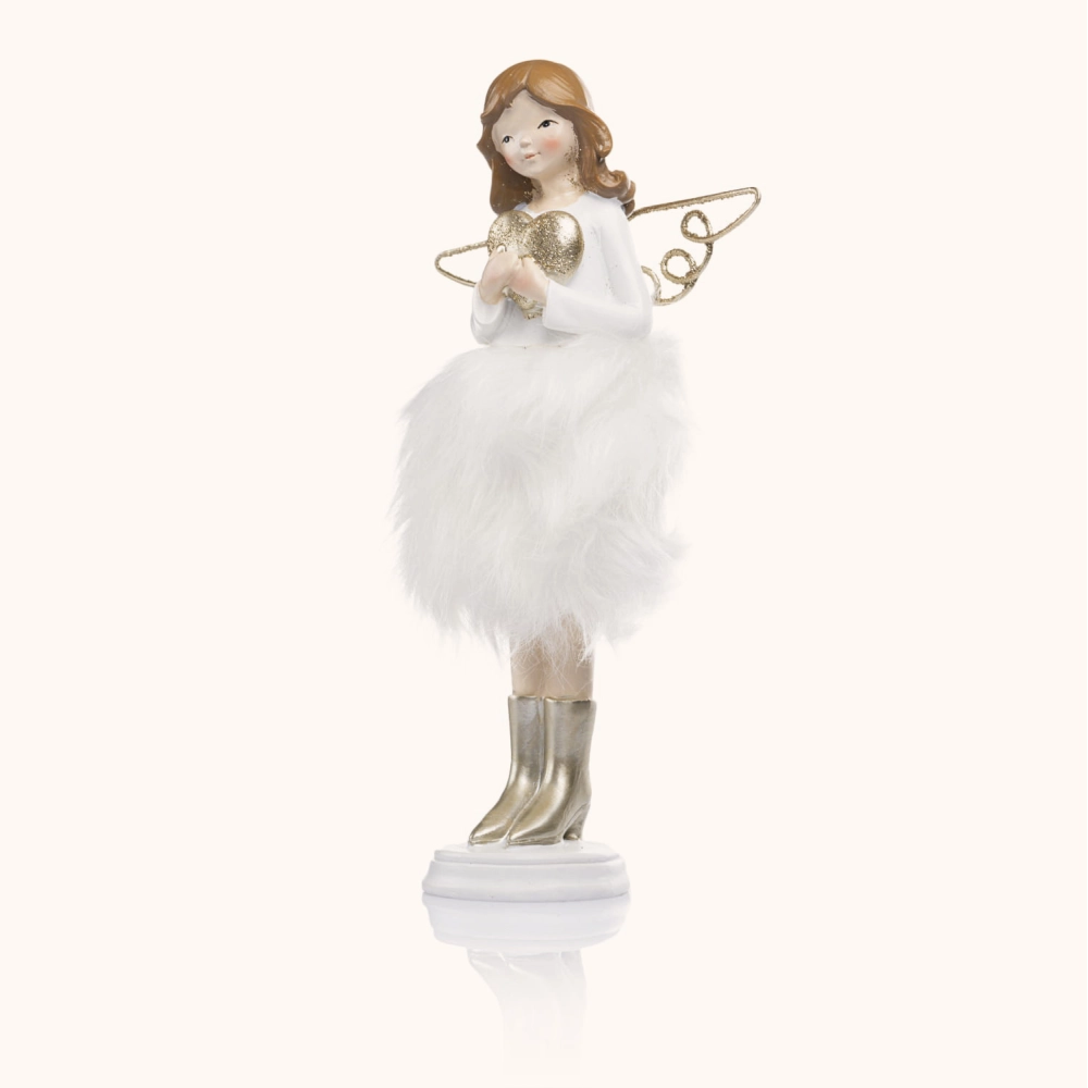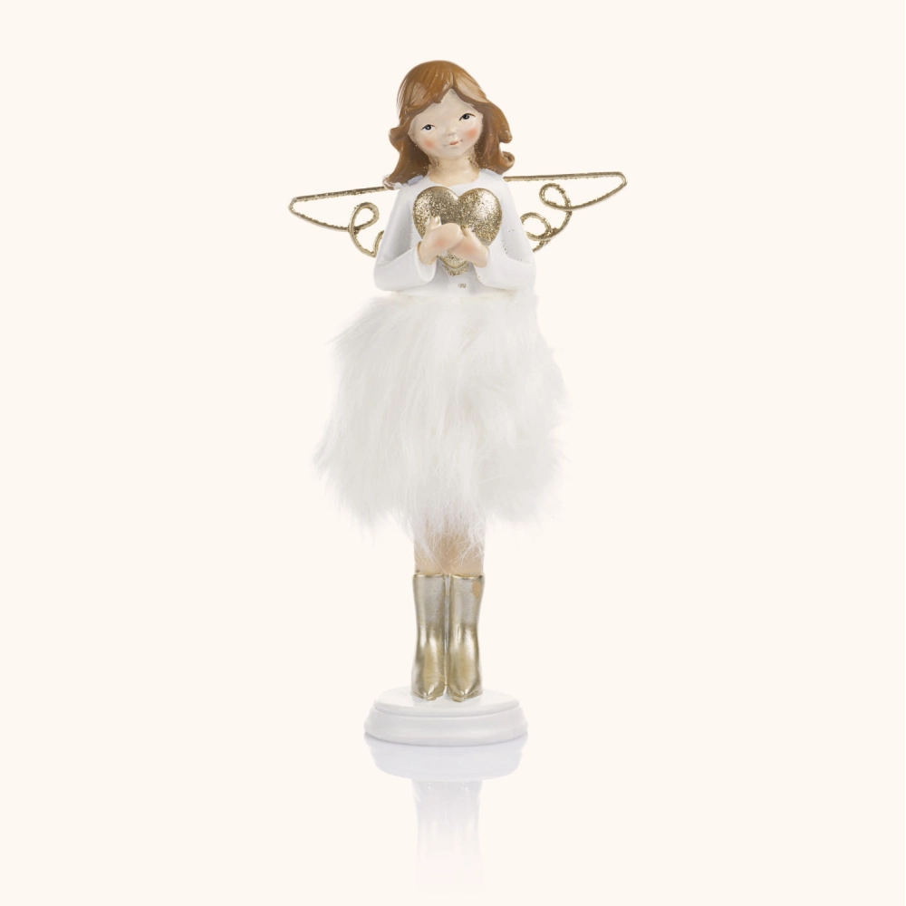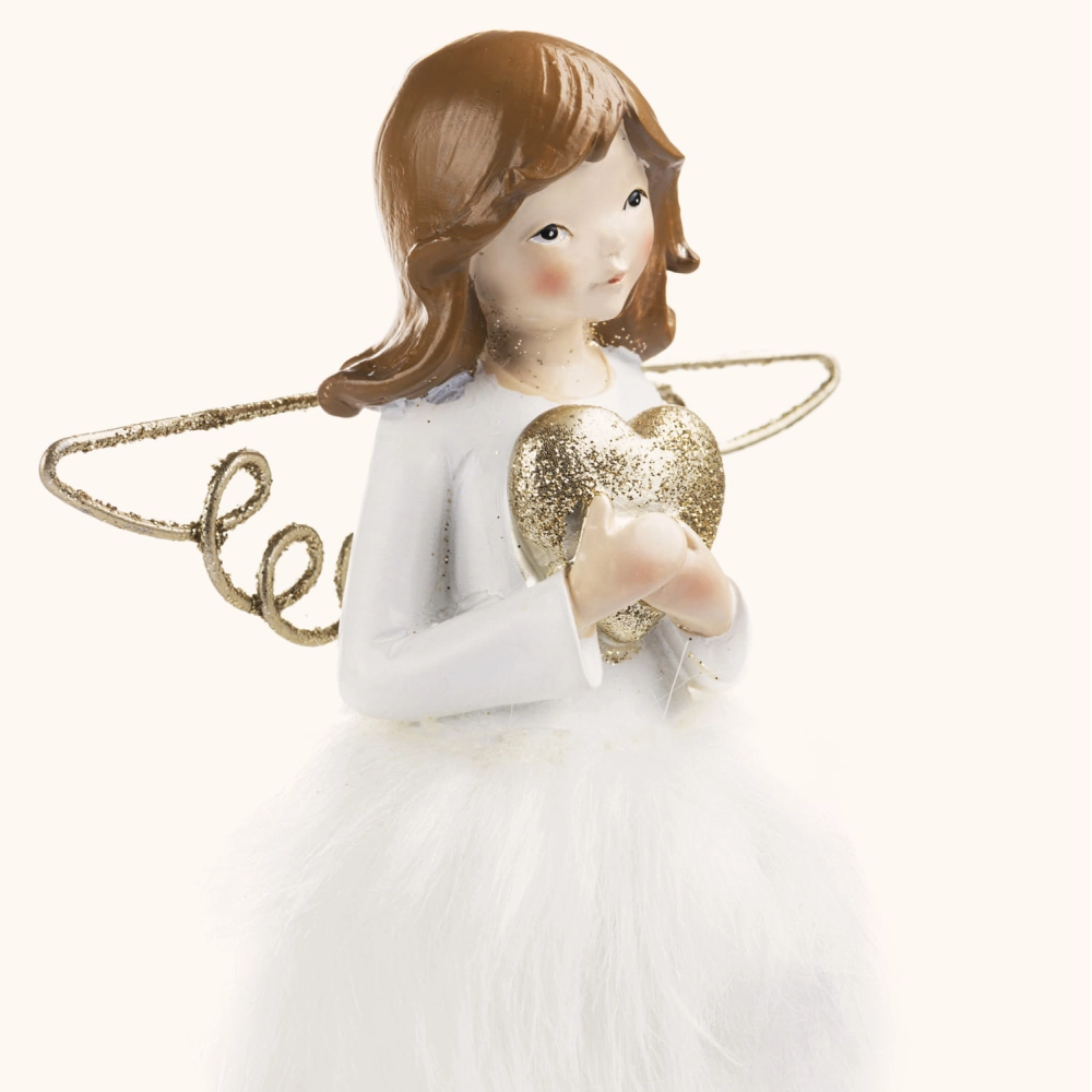Aniołek baletnica z sercem w dłoniach to subtelna figura o wyjątkowej symbolice. Jego delikatna postać, ubrana w białe pióra i złote akcenty, niesie przesłanie czystości, pokoju i miłości. Elegancka forma i anielski wyraz sprawiają, że staje się nie tylko ozdobą, lecz także cichym świadkiem duchowego wymiaru Świąt.