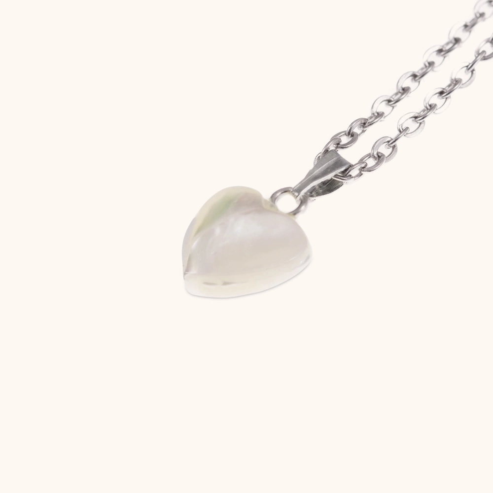 Delikatny naszyjnik z masy perłowej w kształcie serca to subtelna ozdoba o wyjątkowym znaczeniu. Zawieszka o wielkości 1,2 cm pięknie mieni się w świetle, podkreślając naturalne piękno perły. Łańcuszek wykonany ze stali szlachetnej o długości 55 cm zapewnia trwałość i komfort noszenia.