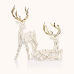 Nowoczesna figurka renifera w geometrycznej formie, łącząca biały kolor z eleganckim złotem. Dostępna w dwóch wersjach - stojącej i leżącej – świetnie sprawdzi się jako element świątecznej aranżacji w stylu minimalistycznym lub glamour. Lekka forma i szlachetne wykończenie dodają wnętrzu subtelnej magii zimowego krajobrazu.