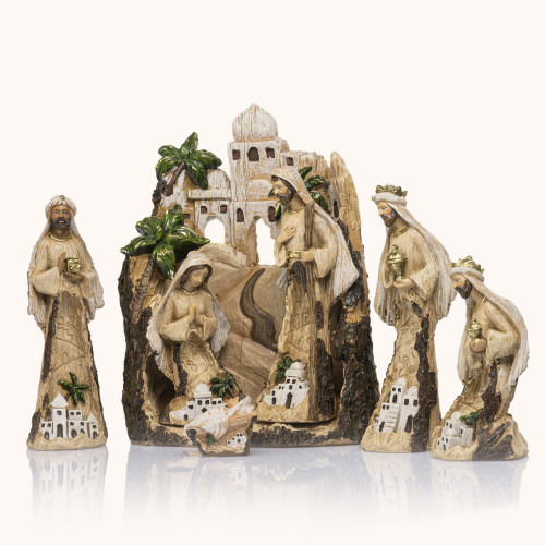 Szopka bożonarodzeniowa „Wigilijna noc” z kolekcji Decorato - klasyczna, pełna ciepła scena Narodzenia Pańskiego, wykonana w odcieniach złamanej ochry. Zestaw mierzy 30 cm i zawiera najważniejsze postacie: Świętą Rodzinę, Trzech Króli, pasterzy i zwierzęta. Idealna do domu lub kościoła jako elegancka dekoracja świąteczna.
