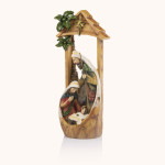 Figurka o wysokości 34 cm przedstawiająca Świętą Rodzinę w drewnianej strukturze - pełna prostoty, ciepła i naturalnego piękna. Wykonana z dbałością o detale, z wyraźnie zaznaczoną fakturą drewna, idealna do tradycyjnego wnętrza lub jako symboliczna dekoracja na czas Bożego Narodzenia.