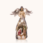 Anioł pokoju otula swoim światłem Świętą Rodzinę, ukrytą w sercu jego szat. To nie tylko figurka, ale opowieść o czułej obecności, która zstępuje w noc Narodzenia, przynosząc ciszę, bezpieczeństwo i światło nadziei. Wprowadza do wnętrza atmosferę świąt pełnych pokoju, jak modlitwa niesiona na skrzydłach anioła.