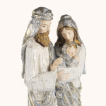 Figurka Świętej Rodziny o eleganckim wykończeniu i złotych zdobieniach wprowadza do wnętrza świąteczny blask i majestat. Wysoka forma sprawia, że staje się wyjątkowym akcentem bożonarodzeniowej dekoracji.