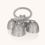 Dzwonki liturgiczne poczwórne wykonane z mosiądzu pokrytego niklem, z ozdobną, ręcznie grawerowaną powierzchnią. Ich czysty, harmonijny ton podkreśla uroczysty charakter liturgii. Wysokość około 13 cm nadaje im elegancji i wygody w użytkowaniu.
