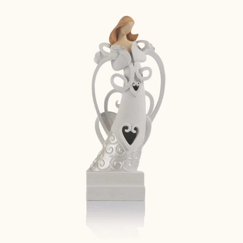 Anioł w bieli, rozświetlony subtelnym światłem - symbol opieki i pokoju. Delikatne zdobienia i wysokość 20 cm czynią go elegancką ozdobą świąteczną, która wprowadza ciepło i duchową głębię do wnętrza. Idealny do modlitewnego kącika lub jako wyjątkowy prezent.