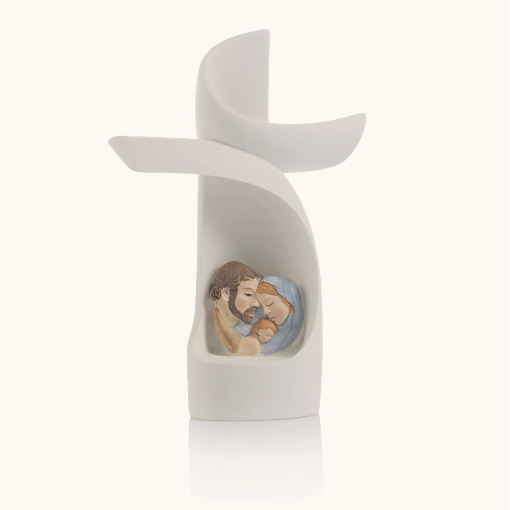 Nowoczesna forma i duchowe przesłanie - ta subtelna figurka łączy w sobie Świętą Rodzinę i symbol krzyża. Proste linie i światło nadają jej głębię i ciszę, jaką niesie Boże Narodzenie.