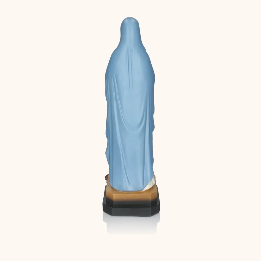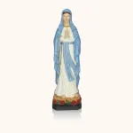 Figura Matki Bożej Różańcowej o wysokości 40 cm przedstawia Królową Modlitwy z różańcem w dłoni i złożonymi do modlitwy rękami. Utrzymana w klasycznych barwach błękitu i bieli, zachwyca subtelnym wyrazem twarzy i starannym wykończeniem. Idealna do domowego ołtarzyka, jako pamiątka lub duchowy prezent.