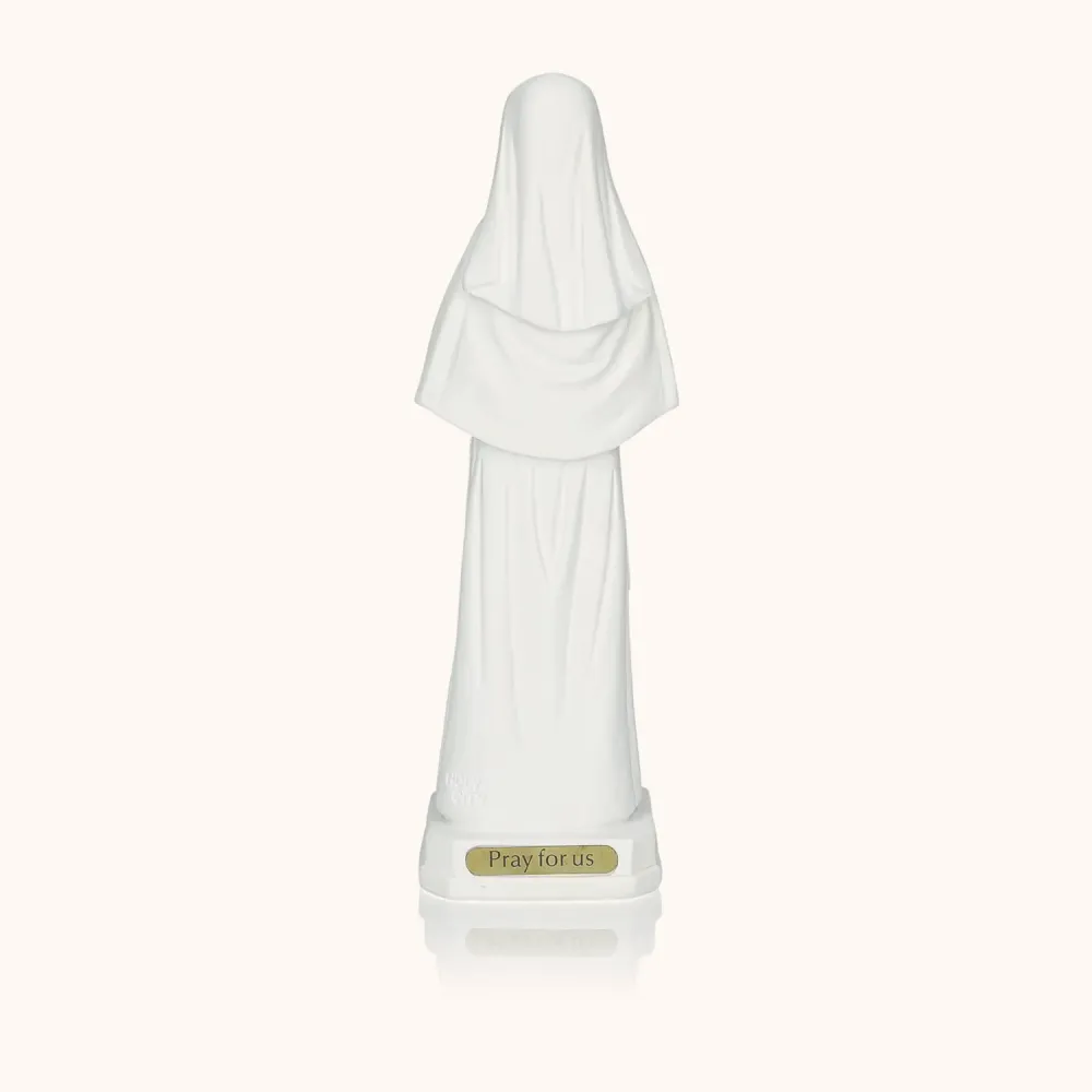 Święta Faustyna Kowalska to apostołka Bożego Miłosierdzia i autorka „Dzienniczka”, którego przesłanie odmieniło duchowość wielu serc na całym świecie. Patronka Łodzi oraz osób, które pragną ufać bezgranicznie Bożej opatrzności, jest symbolem pokory, posłuszeństwa i głębokiej modlitwy. Figurka ma wysokość 20 cm i została wykonana z trwałej, białej żywicy, co sprawia, że świetnie nadaje się zarówno do użytku domowego, jak i do dekoracji przestrzeni sakralnych. Prosta w formie, a jednocześnie pełna wewnętrznej głębi.
