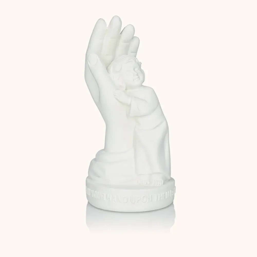 Kropielnica z wizerunkiem Świętej Rodziny to piękna dekoracja religijna o głębokim przesłaniu. Wykonana z białej żywicy, zachwyca detalami i delikatnością formy. Ma 17 cm wysokości, dzięki czemu świetnie nadaje się do zawieszenia przy drzwiach wejściowych, w domowej kapliczce lub w miejscu codziennej modlitwy. Przypomina o Bożej obecności i zachęca do błogosławieństwa wodą święconą.