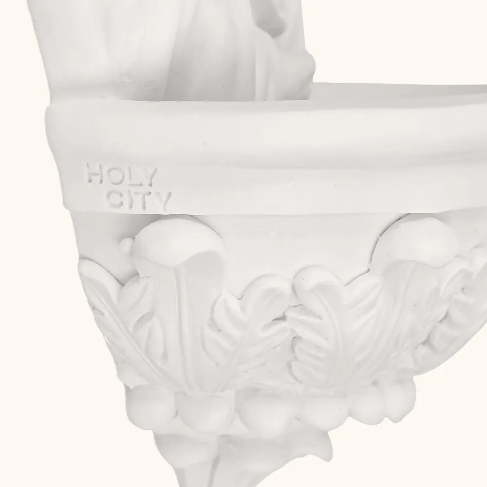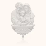 Kropielnica z wizerunkiem Świętej Rodziny to piękna dekoracja religijna o głębokim przesłaniu. Wykonana z białej żywicy, zachwyca detalami i delikatnością formy. Ma 17 cm wysokości, dzięki czemu świetnie nadaje się do zawieszenia przy drzwiach wejściowych, w domowej kapliczce lub w miejscu codziennej modlitwy. Przypomina o Bożej obecności i zachęca do błogosławieństwa wodą święconą.