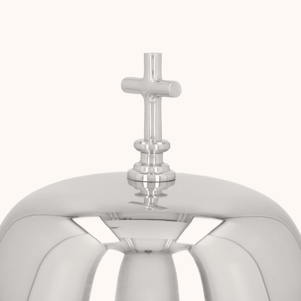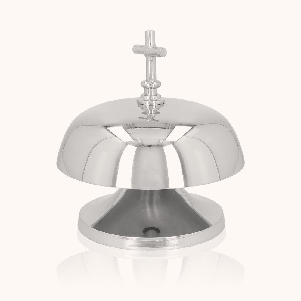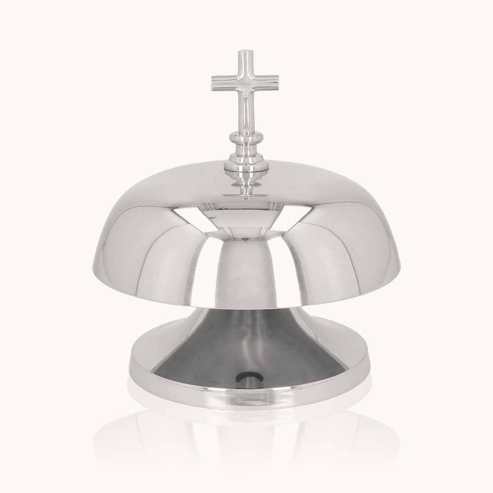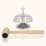 Gong liturgiczny pojedynczy wykonany z mosiądzu pokrytego niklem, z drewnianym młotkiem w zestawie. Wyróżnia się czystym, dźwięcznym tonem i eleganckim wykończeniem. Średnica około 20 cm sprawia, że doskonale sprawdza się podczas uroczystych celebracji liturgicznych.
