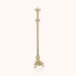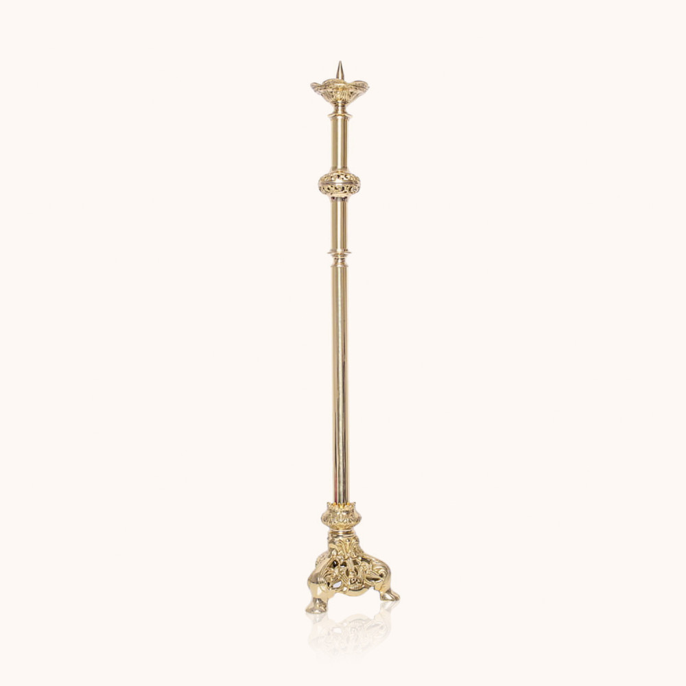 Wysoki lichtarz o wysokości 95 cm, wykonany z odlewu mosiężnego, zaprojektowany z myślą o podniosłej oprawie liturgicznej. Stabilna podstawa o szerokości 46 cm oraz misa pod świecę o średnicy 20 cm tworzą harmonijną całość - okazałą, a zarazem pełną sakralnego piękna.