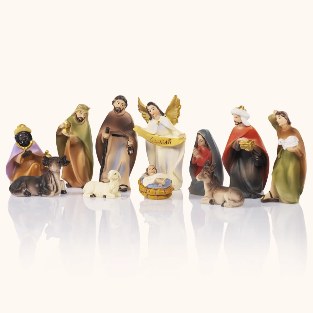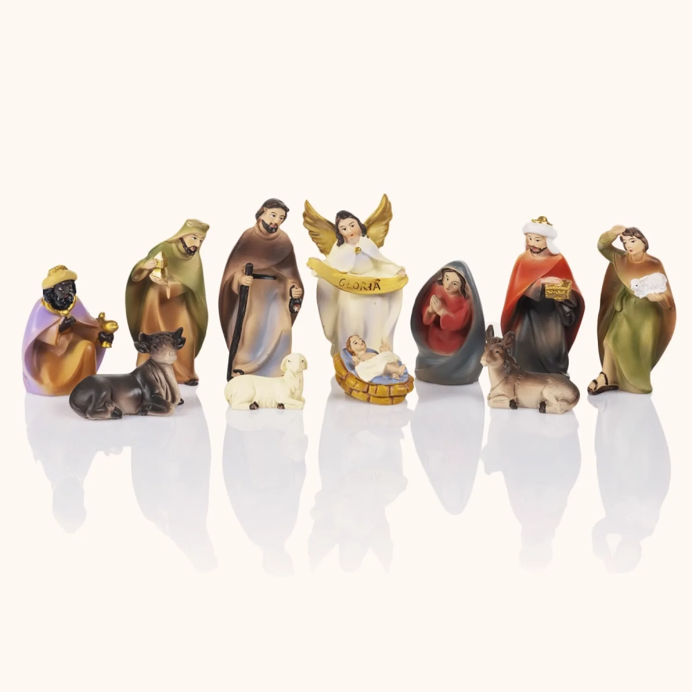 Szopka bożonarodzeniowa „Przy Żłóbku” w klasycznym stylu, pełna ciepła i prostoty. Subtelne barwy i miękkie linie postaci tworzą scenę tchnącą spokojem. W formie o wysokości około 9 cm stanowi elegancką ozdobę, która wprowadza do domu ducha Bożego Narodzenia.