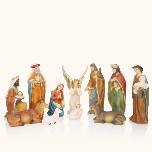 Szopka bożonarodzeniowa „Pokój na Ziemi” utrzymana w ciepłych, klasycznych barwach. Subtelne detale i harmonijne postacie tworzą scenę pełną ciszy i blasku. W formie o wysokości około 10 cm stanowi elegancką, symboliczną ozdobę świątecznego wnętrza.