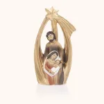 Delikatna figurka przedstawiająca Świętą Rodzinę w otoczeniu złotej gwiazdy betlejemskiej. Utrzymana w klasycznej kolorystyce z subtelnym połyskiem.