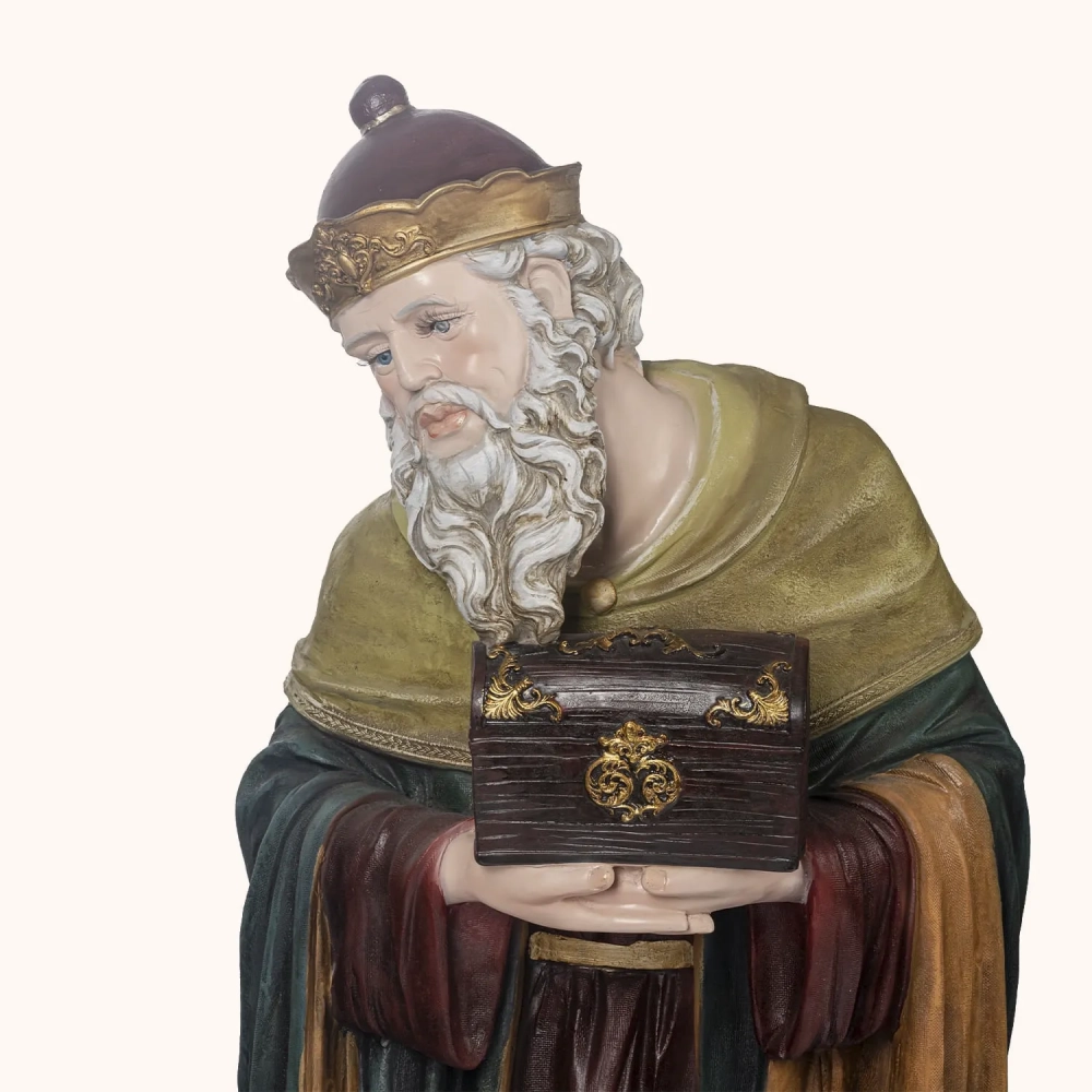 Szopka bożonarodzeniowa „Betlejemska Opowieść” w rozmiarze 120 cm to imponująca scena Narodzenia Pańskiego, która stanie się centralnym punktem każdej większej przestrzeni - kościoła, kaplicy lub reprezentacyjnego wnętrza.