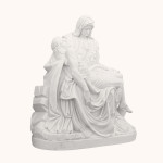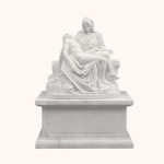 Ręcznie rzeźbiona z jednego bloku marmuru figura Piety o wysokości 150 cm. Przedstawia Maryję trzymającą ciało Chrystusa - symbol bezgranicznej miłości i współcierpienia. Monumentalna forma i klasyczne piękno marmuru czynią ją wyjątkowym miejscem modlitwy i zadumy. Odporna na warunki atmosferyczne.