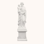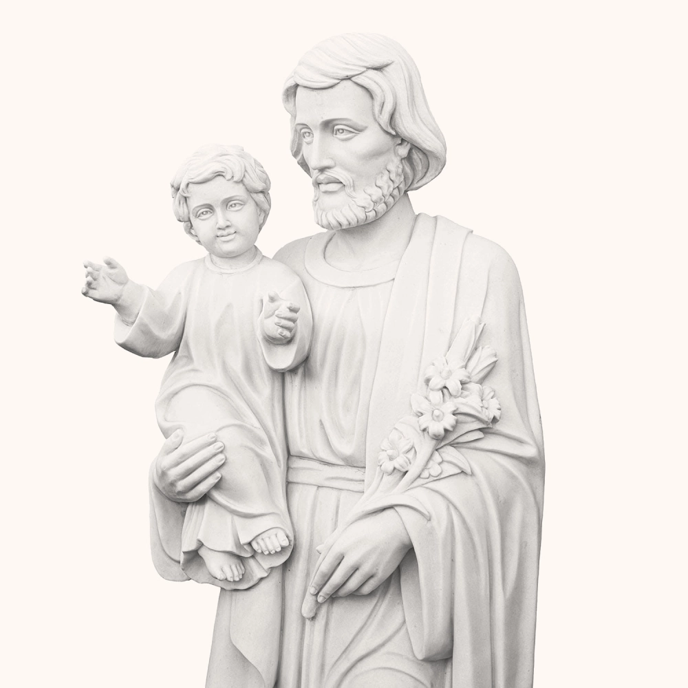 Ręcznie rzeźbiona z jednego bloku marmuru figura o wysokości 140 cm. Przedstawia św. Józefa trzymającego Dzieciątko Jezus - symbol opieki, wierności i męskiej czułości. Subtelne detale i gładka struktura marmuru nadają jej wyjątkową harmonię. Odporna na warunki atmosferyczne, doskonała do ogrodów, kaplic i przestrzeni sakralnych.