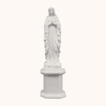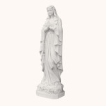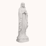 Delikatne linie szat oraz subtelny wyraz twarzy podkreślają duchową głębię i spokój. Marmurowa struktura nadaje figurze wyjątkową trwałość i ponadczasowe piękno. Dzięki odporności na warunki atmosferyczne doskonale sprawdzi się zarówno w świątyniach, jak i w przestrzeniach zewnętrznych – przy kapliczkach i ogrodach modlitewnych.