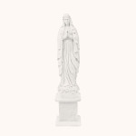 Delikatne rysy twarzy i harmonijne linie szat emanują spokojem i duchowym blaskiem. Marmur nadaje jej trwałość i elegancję, a dzięki swojej odporności na warunki atmosferyczne figura doskonale sprawdzi się zarówno we wnętrzach, jak i w ogrodowych kapliczkach czy przykościelnych przestrzeniach.