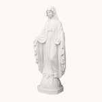 Ręcznie rzeźbiona figura o wysokości 80 cm, wykonana z jednego bloku marmuru, przedstawiająca Matkę Bożą Niepokalaną stojącą na kuli ziemskiej, z wężem u stóp - symbolem zwycięstwa nad grzechem.